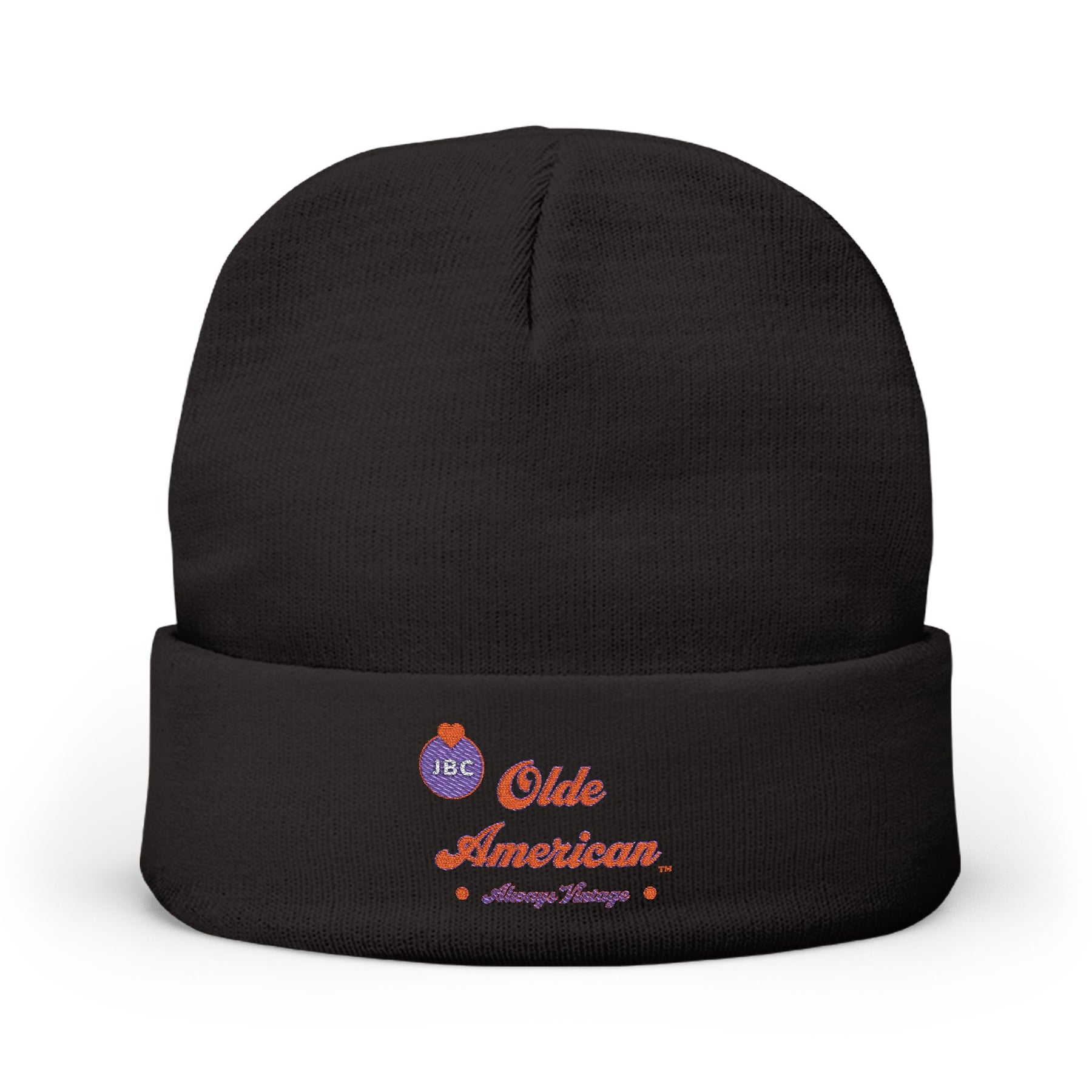 The form-fitting design provides a snug and comfortable fit, ensuring it stays in place while keeping you warm. With its one-size-fits-most design, this beanie is versatile and can easily be personalized with your unique embroidery, making it a standout accessory in any wardrobe. Whether you're lounging or out on the go, this beanie adds both flair and functionality to your look. Embroidered JBC Olde American logo.